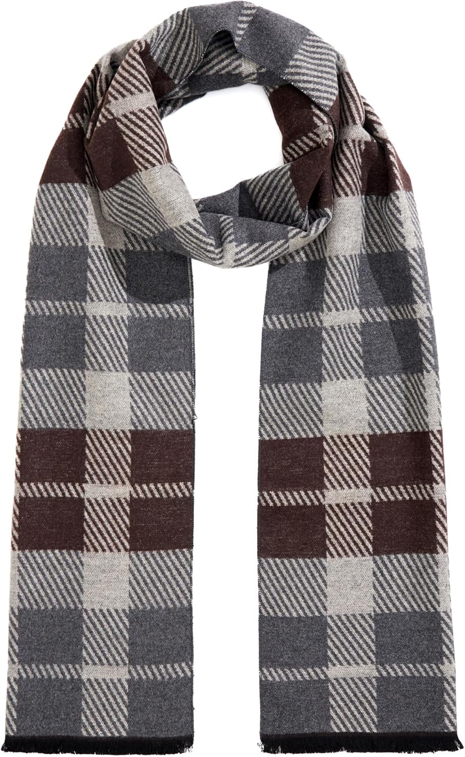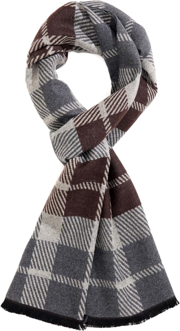 Men’s Winter Warm Scarf Premium Cashmere Feel, Luxuriously Soft Long Plaid Pattern
